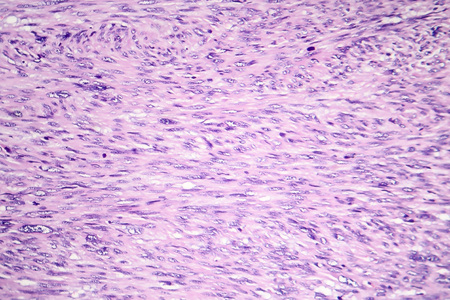 Leiomyosarcoma, a malignant cancerous smooth muscle tumor, light micrograph, photo under microscope