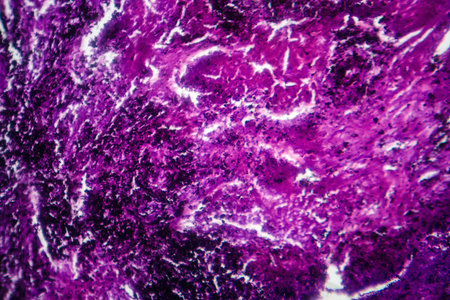 Squamous cell carcinoma diseased tissue under the microscope 100x