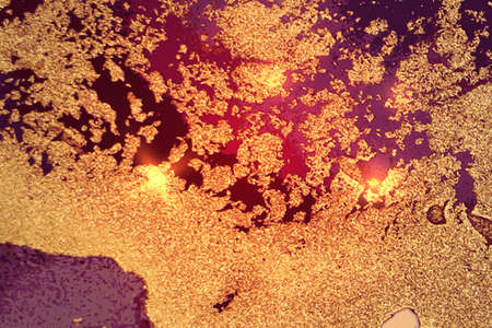 Gout crystals deposits in the kidney tissue under the microscope 100x