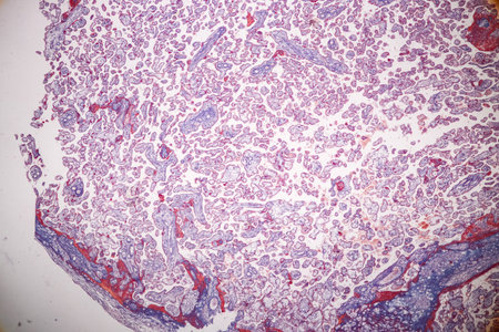 Histological Uterus human, Uterine tube human, Placenta human and Umbilical cord Human under the microscope for education.