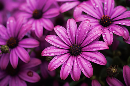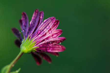 Beautiful purple daisy flower with dew drops on petals