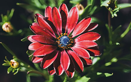 Beautiful red daisy flower in the garden, close-up