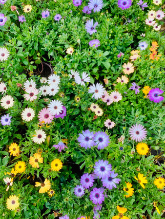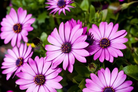 Colorful blossoms of African daisy, cape daisy, osteospermum, daisy bushes blooming
