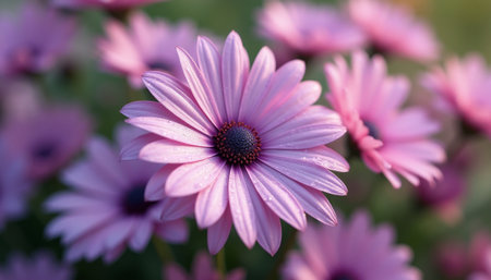 Beautiful Purple Osteospermum Flowers in Soft Focus Garden Scene