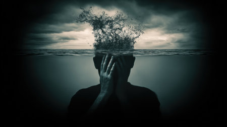 Visual metaphor for suppressing emotions and inner emotional struggle concept..