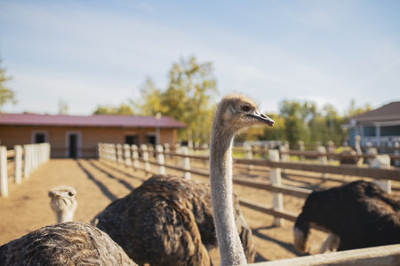 Portrait of ostrich showing personality in modern eco conscious farming.