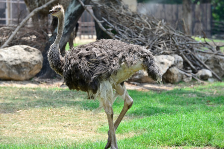 Ostrich walking on the plains in Chiang Mai Zoo , Thailand