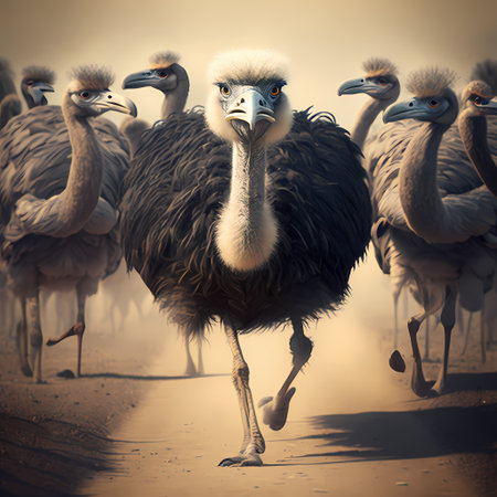 Portrait of ostrich showing personality in modern eco conscious farming.