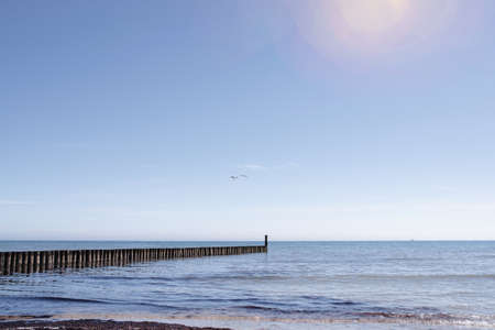 groynes jutting into the sea. taken in zingst on the darss. the perspective is directed to the horizon