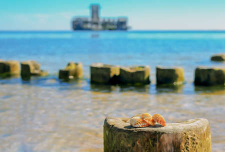 Three small shells on the breakwater post in Poland