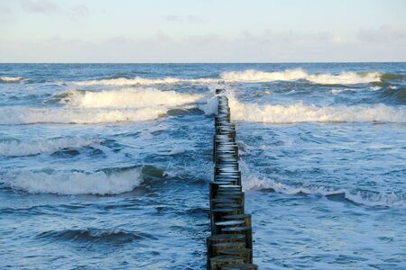Wooden groynes in the rough Baltic Sea on the Fischland-Darß-Zingst peninsula