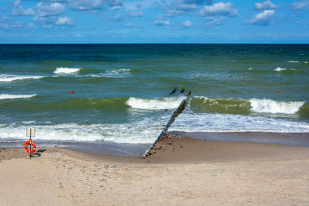Breakwater on the beach of the Baltic Sea near Rewal in Poland
