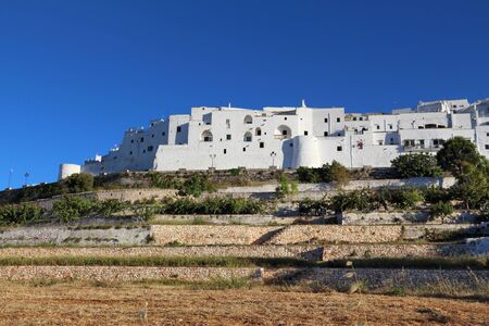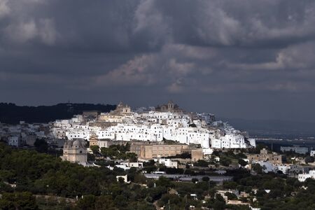 Panoramic view of the white city Ostuni, province of Brindisi, Apulia, Italy.