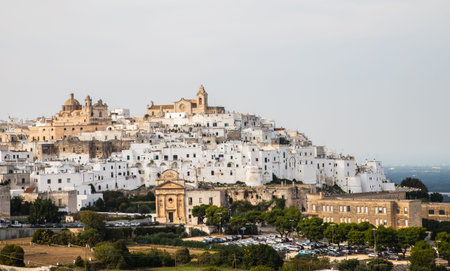 Panoramic view of the white and old city of Ostuni, Apulia, South Italy
