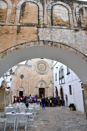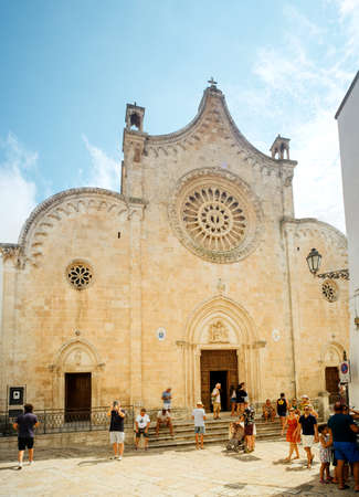 Ostuni, Puglia Italy - Friday 23 August 2019: facade of the cathedral of Ostuni