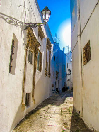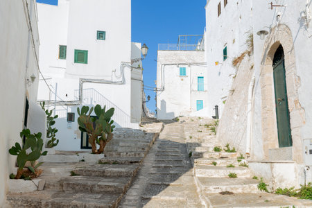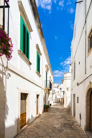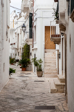 Narrow street in romantic white city of Ostuni, Puglia, Italy