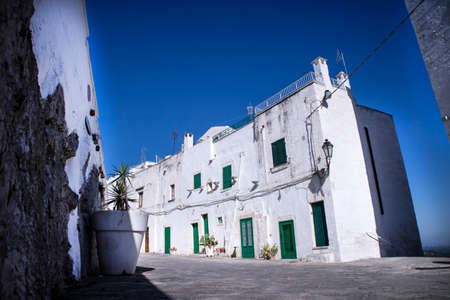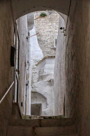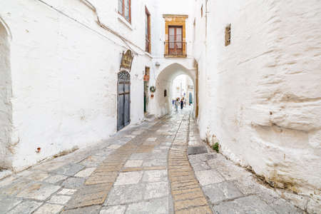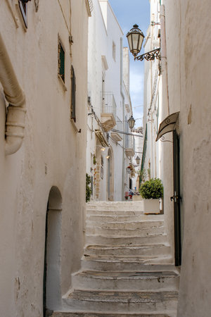 Ostuni, Puglia Italy - Friday 23 August 2019: view of an alley in the old city