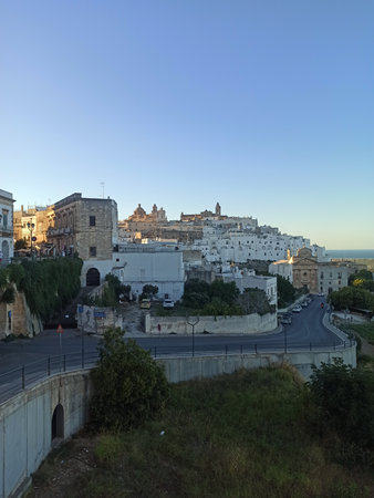 Beautiful view of the city of Ostuni before sunset. Ostuni, Puglia, Italy