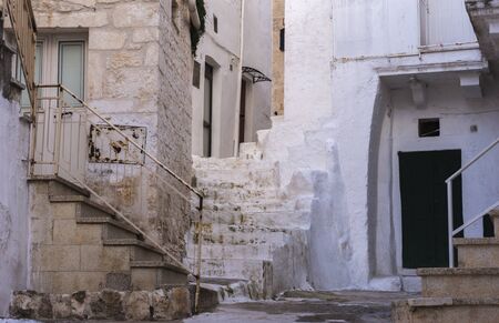 Characteristic narrow streets in the historic center of Ostuni, white city in Puglia, province of Brindisi, Italy