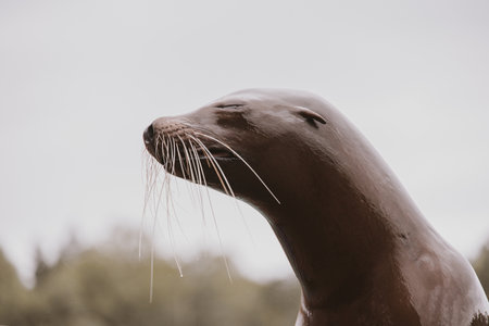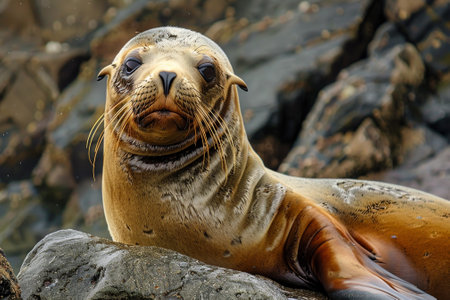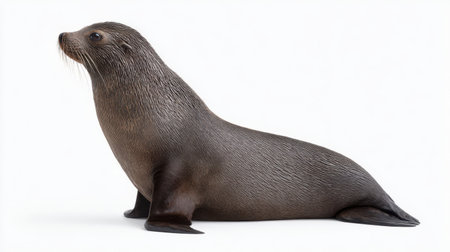 A captivating image of a brown sea lion resting in a tranquil pose against a white background. Its details include smooth fur, expressive whiskers, and a relaxed demeanor, ideal for wildlife enthusiasts and educational use.