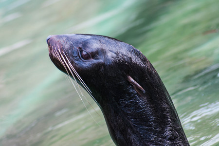 A Cape fur seal sticking its head out of the water and enjoying the warm sun with its eyes closed