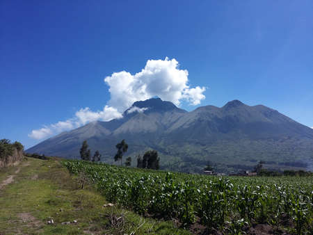 Imbabura Volcano situated in the north of ecuador with a beutiful blue sky in the background with some clouds