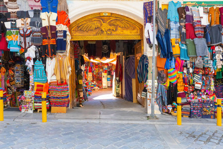 Arab bazaar. samples of the national fabric. Dubai. UAE