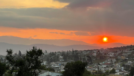 Beautiful landscape mountain view in the middle of earth city in the outsides of Quito, Ecuador, South America