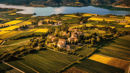 Generative AI : Aerial view of Gologorica old town located on the top of a hill Typical landscape of Central Istria Croatia