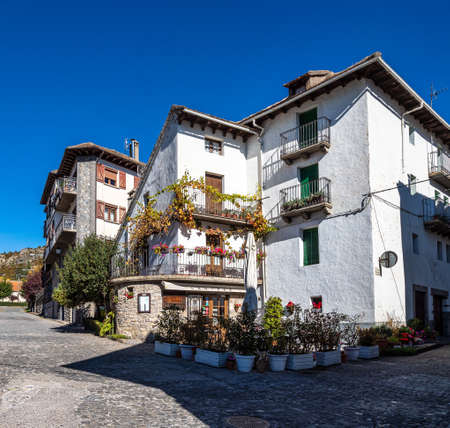 Beautiful village Hecho in the Hecho valley in the pyrenees mountains Huesca Spain Europe