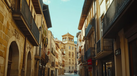 Spain - 14 October 2019: The architecture of the ancient town. The Way of St. James, Northern Route, Spain