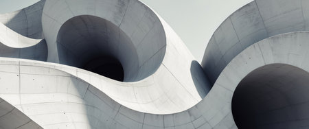 AI Generated. Abstract Concrete Structure with Swirling Curves and Contrasting Light and Shadows