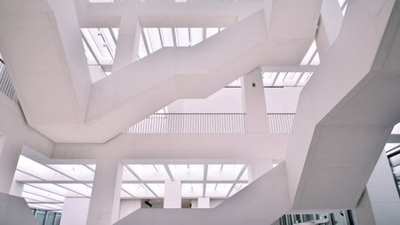 Abstract curves and shapes of a white modern building creating an interesting architectural design with smooth lines and a minimalist aesthetic