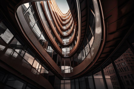 Inside atrium of a modern curved office building. Generative AI