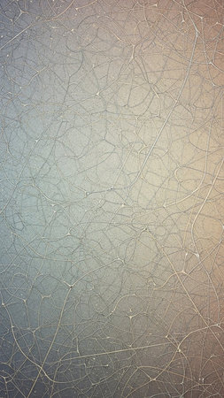 An intricate network of thin gray lines and nodes forming an abstract organic pattern resembling neural pathways or root systems on a textured surface.