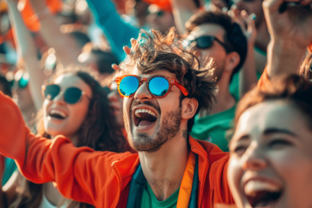Happy Multiracial Fans Celebrating at Sports Event.