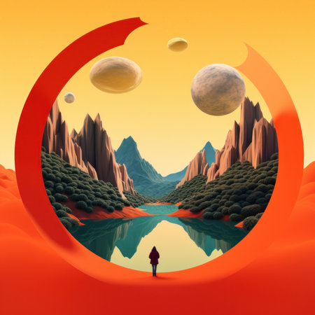 Landscape with a mysterious psychedelic mirror in the middle.