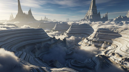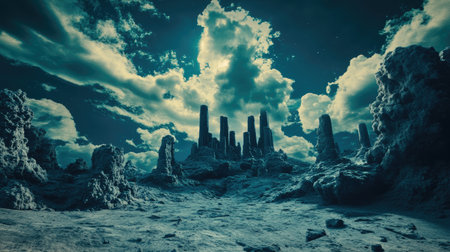 Alien Planet - 3D Rendered Computer Artwork. Rocks and sky