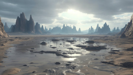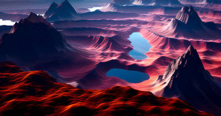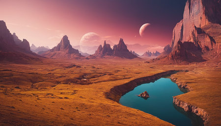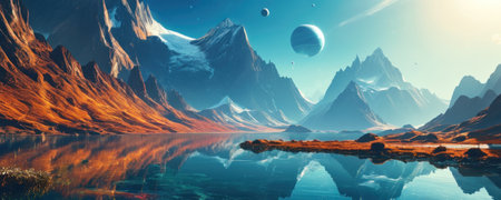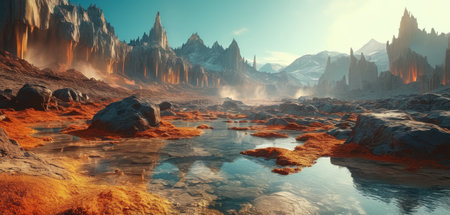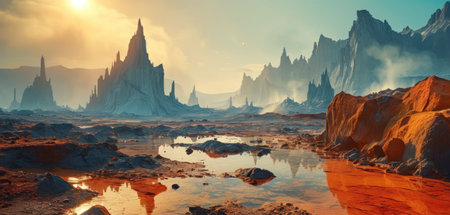 Alien Planet - 3D Rendered Computer Artwork. Rocks and lake