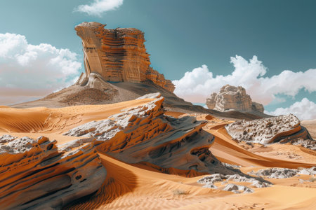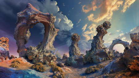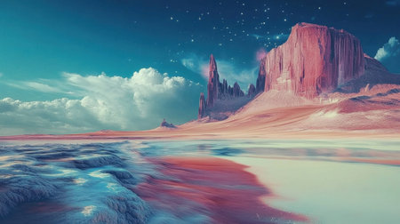 Bizarre Surreal planet landscape. Summer nature rock. Generate Ai