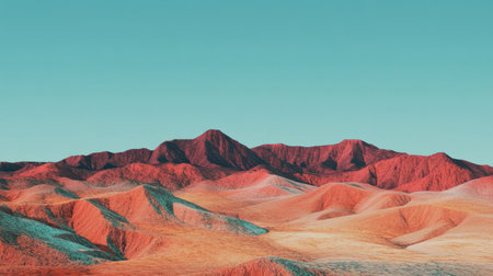 A breathtaking desert landscape featuring vibrant mountains under a clear sky. The hills display a striking array of colors, creating a stunning natural spectacle.