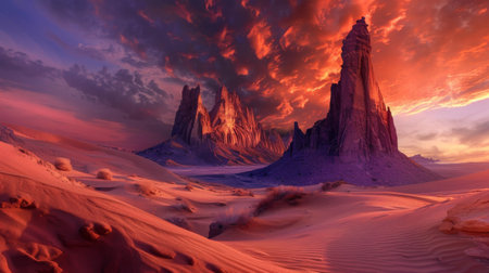 Cinematic view of a breathtaking desert landscape with vibrant colors and dramatic contrasts