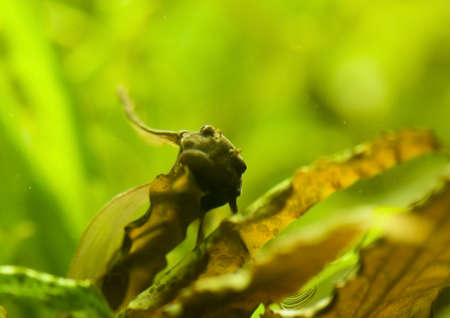 macro shot of tadpole with legs on blackbackground