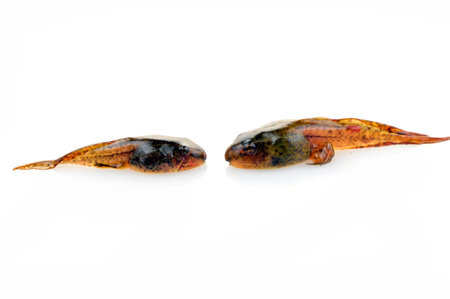 Tadpoles in close-up pictures on a white background