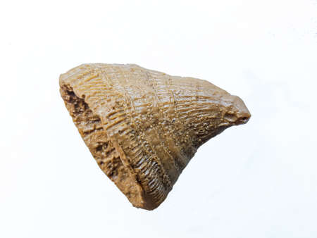 macro of fossil shark tooth isolated on white