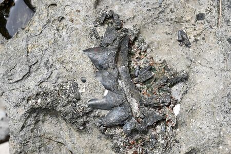 ancient Mesozoic age fossil fish in the rock