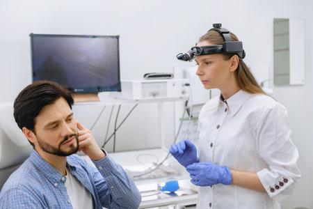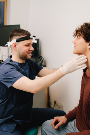 Man having otolaryngology consultation in clinic