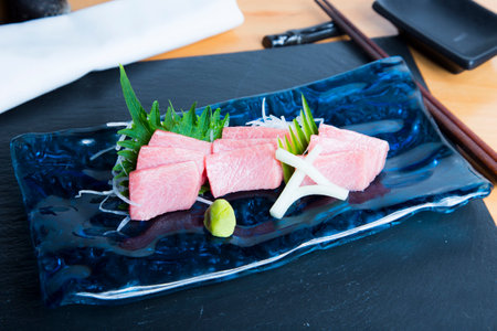 Tuna Otoro sashimi, raw fish in traditional Japanese style