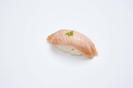 Salmon Sushi on white background in closeup