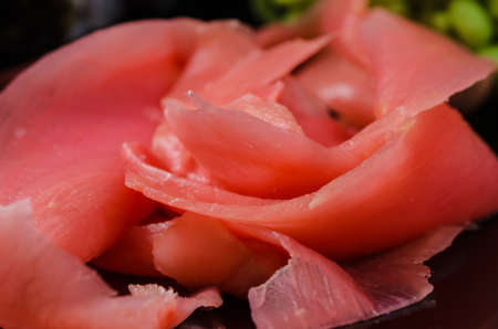 Japanese sushi made with rice, fish and seaweed with ginger and wasabi